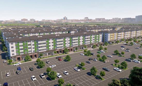 транспортная развязка, магазины, места отдыха и развлечений, парковые зоны.